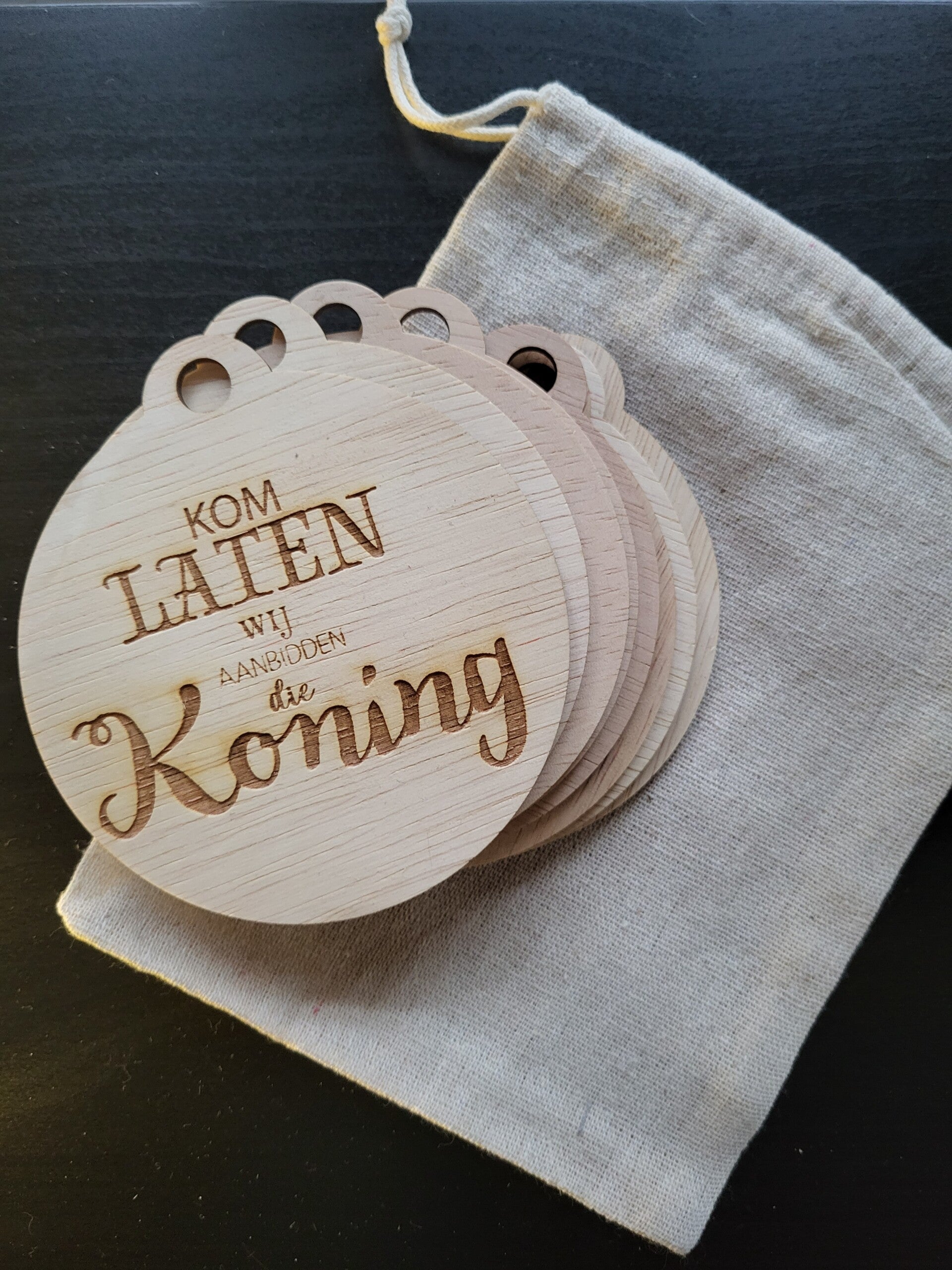 Kerstbal met mooie christelijke teksten. De ballen zijn 10 cm doorsnee en 3 mm dik. Los te bestellen en in een set met een mooie setprijs.